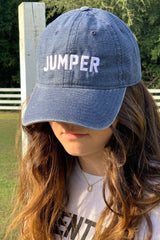 Hide your helmet hair and protect yourself from the sun with our Jumper Vintage Varsity Dad Hat. Also available in Hunter, Eventing and Dressage.